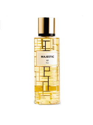 Пленительный цветочно-фруктовый эликсир RP Parfums Majestic приглашает вас в Канны, где перед вами распахнуться двери отеля «пять звезд». Он похож на роскошный восточный дворец. Даже название легендарного отеля активизирует воображение. Сегодня он олицетворяет элегантность и комфорт. Пирамида очаровывает спелыми фруктами и вихрем цветочных лепестков. Парфюмер «приготовил» лакомство из медового персика, томленного в сиропе. В бокале – пьянящее красное вино для настроения. В десертной сервировке предусмотрены шарики ванильного мороженого, щедро политые вареньем из терпкой черной смородины. Плюс – ароматная, истекающая соком малина. Парфюмер добавил одновременно ягодки и листочки в засахаренном виде. Белоснежные колокольчики ландыша тоже усыпаны крупинками сахара. Экзотическая маракуйя манит на тропический остров, где царят веселье и свобода. Спелые персики такие сочные, что, если посмотреть на солнце, сквозь бархатный камзол можно увидеть косточку. В шлейфе – карамельные пачули, грушевый сидр и облачко мягкой ванили.
